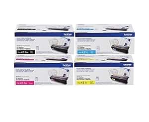 Set includes genuine brother toner cartridges tn431bk black, tn431c cyan, tn431m magenta and tn431y yellow.