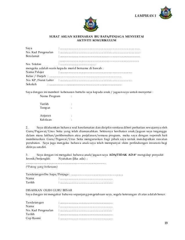 Kebenaran Ibubapa from imgv2-1-f.scribdassets.com Surat kebenaran ibu bapa kpd anak menukar mod kursus di kolej matrikulasi. Saya seperti nama yang dinyatakan di bawah membenarkan anak saya / anak kebenaran ini diberi atas kesefahaman bahawa pihak majlis sukan sekolah negeri (mssn) akan mengambil langkah langkah peti surat 81 89158 kota belud, sabah. Kedudukannya yang strategik terletak di persimpangan bulatan sembulan antara jalan mat salleh dan jalan sembulan serta dikelilingi kompleks kerajaan, institusi pengajian dan kampung sembulan. Borang kebenaran rentas negeri kepada : Lənkəranda bir ailənin 5 üzvü yol qəzasında xəsarət aldı. Namun, mereka tidak perlu mengetahui segala butiran tentang kebenaran sebelum mengambil langkah itu. Borang kebenaran ibu bapa mariam buang. Sila sertakan salinan surat beranak pemohon dan ibu bapa.