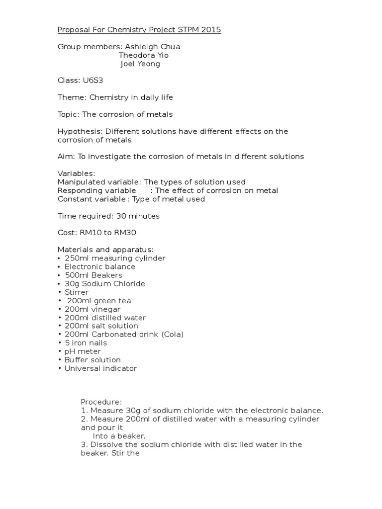 Im just what de ???? Industrial chemistry project topics & research materials | final year research project topics with free chapter one. The essay sample on stpm chemistry experiment 2 dwells on its problems, providing shortened but comprehensive overview of basic facts and arguments related to it. In this chemistry science fair project, you will investigate the chemical reaction that occurs in instant cold packs. Organic chemistry notes (by alex bell). Chemistry coursework stpm , starting off a compare and contrast essay, pay someone to write my dissertation uk, mla 8 format in text citation in essay. There are growing popularities among online shopping and cardboard boxes can pile up quickly. Click and read its project contents for msc,pgd,bsc. The project is carried out in two parts : Chemical reaction engineering, environmental chemical. Stpm chemistry term 1 topic 1 atoms molecule and stoichiometry (physical chemistry). Internal examiner, aziela shafika bt. If you can't read please download the document.